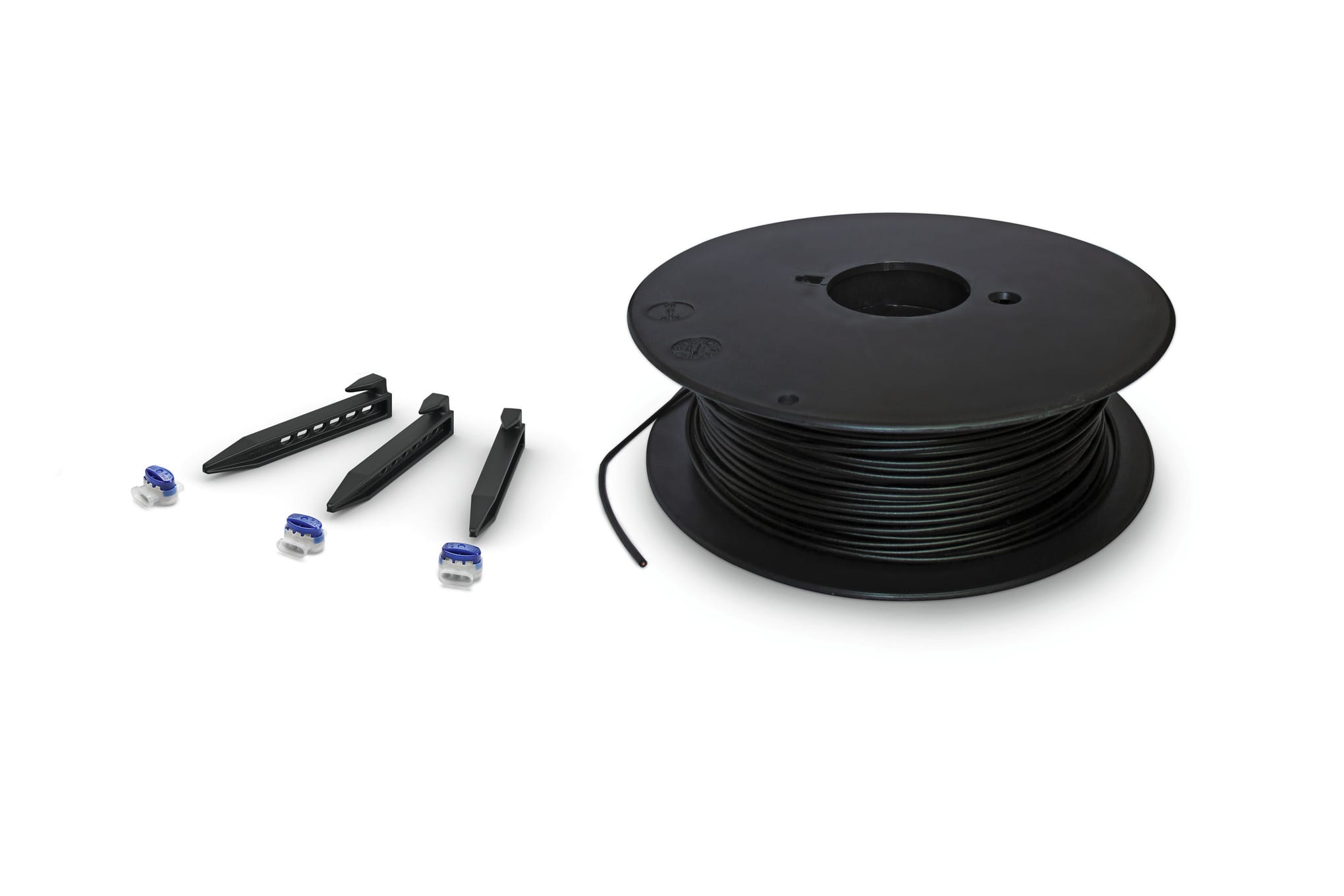 Installation kit consisting of 150 m perimeter wire (roll), ø 3.4 mm, 150 anchoring elements, 2 locking pins, 3 wire connections.