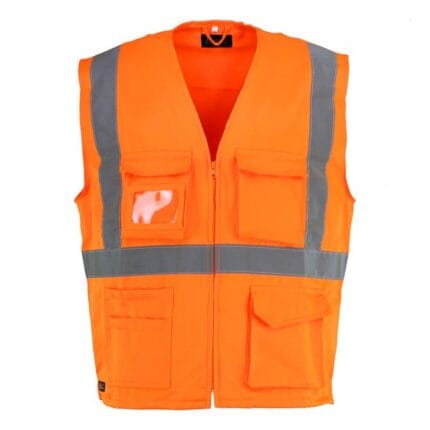 PTW-WT Gilet ad alta visibilità, con strisce riflettenti sulle spalle, cerniera lunga, 2 tasche applicate sul petto con patta, finestra