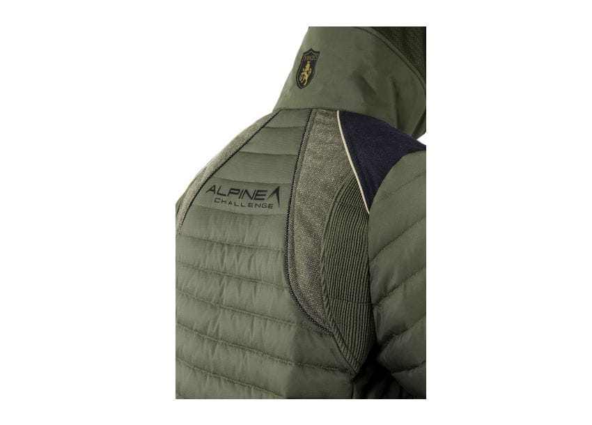 Tutto in ALP è concepito pensando alle lunghe e fredde giornate in montagna a partire dai rinforzi sulle spalle, sagomati per resistere allo strofinio degli zaini, sugli avambracci e sui fianchi. Anche il cappuccio è ideato per i cacciatori alpini: realizzato in POLARTEC® THERMAL PRO, grazie alla naturale elasticità del materiale, aderisce perfettamente al capo garantendo termicità e riducendo al minimo ogni fruscio.